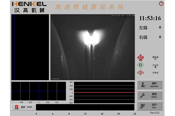 本系統(tǒng)主要功能是對管材的焊接進(jìn)行自動跟蹤與矯正,解決目前人力成本日益提高,人工操作時的視覺疲勞帶來的焊接質(zhì)量問題。系統(tǒng)采用先進(jìn)的智能視覺技術(shù),融合光機(jī)電技術(shù)為一體,目前國內(nèi)尚未發(fā)現(xiàn)同類產(chǎn)品。